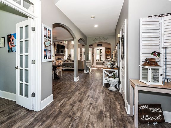 This Gorgeous full brick 4 BR 3.5 bath home provides over 3300 sqft +/- & is situated on a VERY PRIVATE .75 +/- acre cul-de-sac lot.Rejoice in the the 2-story GR where natural light abounds,snuggle up in front of the stunning stone fireplace in the evening.Entertaining is easy w/the free flowing space of the two-story GR, screened porch,open DR, and kitchen.Indulge guests while sitting around the 9 ft granite custom kitchen island, kitchen lavished with quartz countertops,gas range top and beautifully tiled backsplash.Generously sized owner's suite on main charmed w/his & her closets,dble vanity, jacuzzi tub & large glass enclosed shower. Escape to the screened porch that overlooks the fiberglass in-grnd pool to read, relax while taking in the evening breeze from the surrounding lush trees. Laundry & over-sized office w/french drs complete the main. The upper level offers 3 ample sized BR & a bonus rm. Tankless gas HW heater. Low UC Taxes, sought after Cuthbertson Schools.