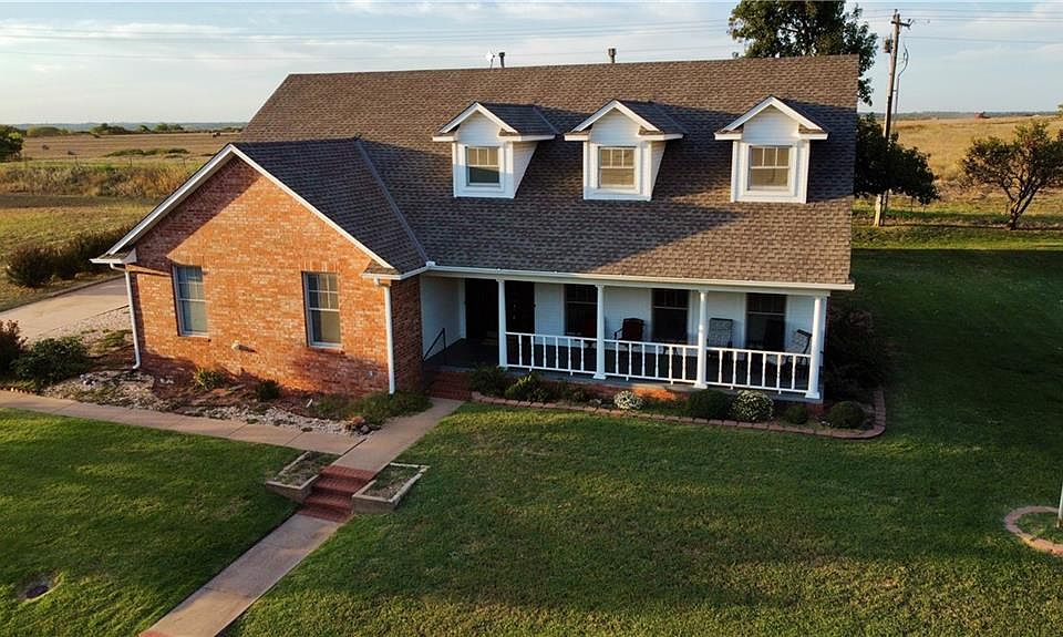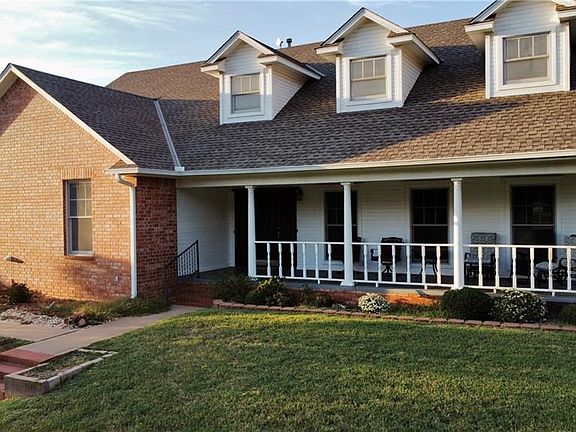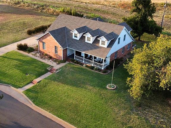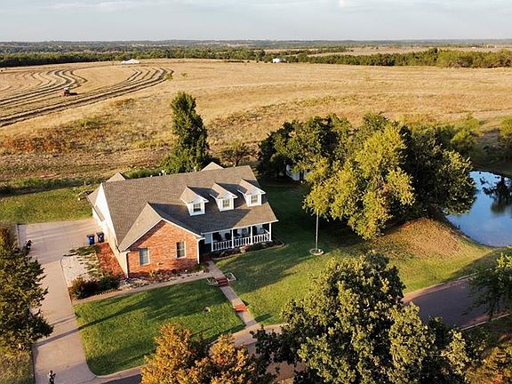 This rare find features a pond to the East and Cimarron National Golf Club across the street. The two story main entrance leads into an open living, kitchen and dining area with built in hutch and huge pantry. The oversized laundry room is located just off of the 3 car garage. The master bedroom is on the first floor with walk in closet and large bathroom with separate shower and garden tub. There is another bedroom and full bath on the first floor. Upstairs features 2 bedrooms and 1 full bath. This property also has a built in storm shelter, sprinkler system, irrigation well!! This saves you $$ while keeping your yard green in the Oklahoma heat! There is also an outside utility/storage building. There is no mandatory HOA and golf membership is available at Residential Membership rate!!!!