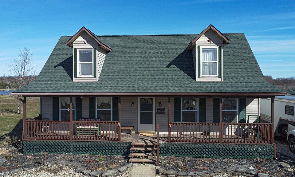 Looking for a quiet country home? Need some more space to roam? Now here is your chance, bring your livestock and your hobbies and leave your worries behind! This cozy three bedroom, two full bathroom Cape Code style home is situated on 8.96 acres. A spacious front porch greets you. When entering the home the living-room is the first space you see, which leads into the kitchen and dining room. The dining room featured sliding patio doors that leads to a beautiful stamped concrete patio. The location of the patio is perfect to enjoy the view of the land and the surroundings. You will also find one of the full bathrooms, laundry and bedrooms on the main level of the home. Moving upstairs you will find the second full bathroom and two more additional bedrooms. Features outside of the home include a two car detached garage, a barn with water, electric and fenced in pastures. This is country living at its best. Set up your showing today and see this wonderful property in person.