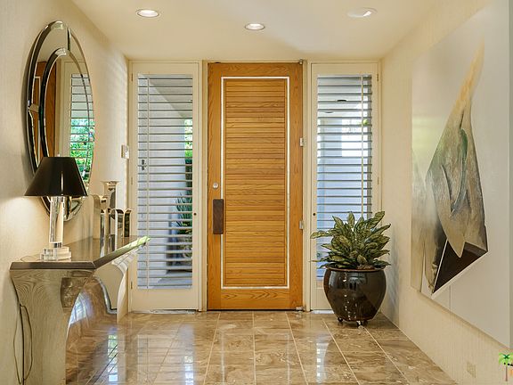 Experience the Gold Standard in Country Club Living inside the gates of Eldorado C.C. This beautifully decorated home, with majestic views of the mountains, is located on a large lot with its own private pool and spa. Once inside the front door, the bright clean lines of the entry draws you towards the living and dining areas. The inviting bar area is great for entertaining and opens up to the living room, with fireplace, and the vast outdoors to the pool and out to the mountains. The dining room is a great space for your next dinner party and seats many. Kitchen has stainless steel appliances, electric cook top, double ovens and breakfast nook with views. There are two nicely decorated guest bedrooms complete with their own bathrooms. Master suite is large with nice built-ins and a desk. Master bath has large tub, double sinks and large walk-in closet. The spa is right off of the Master outside the sliding glass doors, again with incredible views. Outdoor patio & green belt area