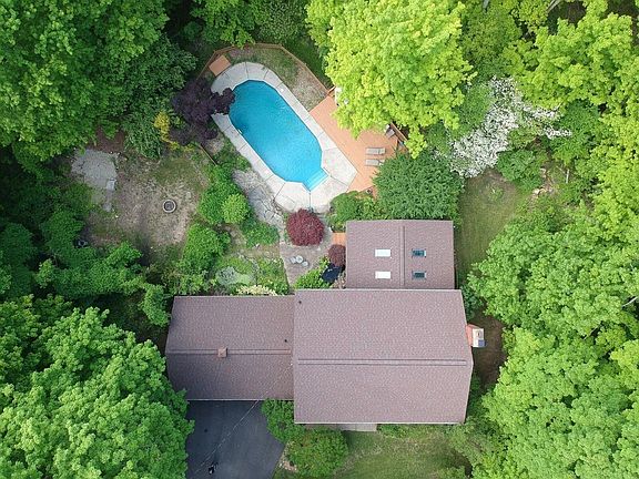 Nestled at the end of a culdesac, then tucked back off a private drive, this beautiful country manor style home offers the privacy & seclusion to escape the busy world! The wall of windows in the FR offer panoramic wooded views & overlooks the inground pool too! Updates incl roof 4/19, shutters,driveway, elec, hdwd fl, granite, HVAC '18 & much more