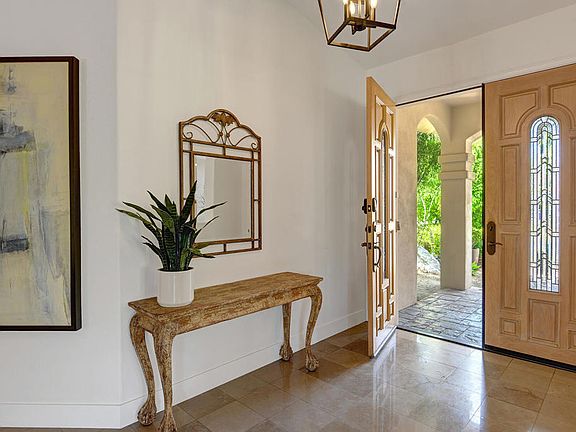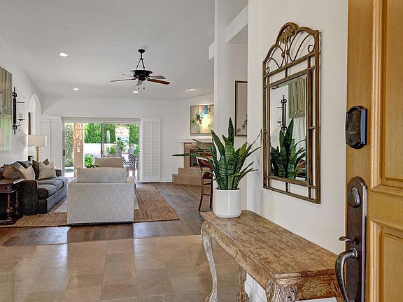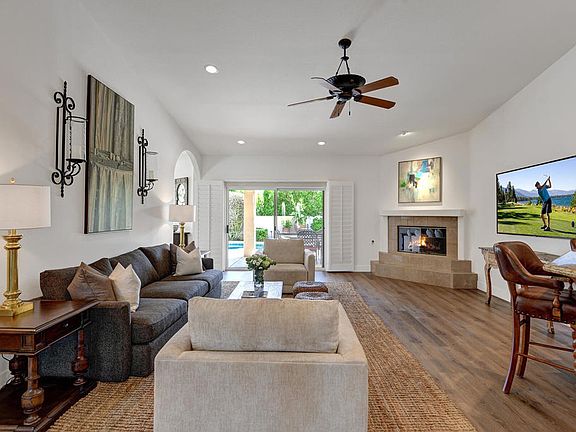 Debuting to the market is this beautifully updated home being offered furnished, per inventory list. As you step inside, you'll be greeted by a spacious and open great room, with wet bar, fireplace, that's perfect for both entertaining, relaxing with friends and family. Additionally, there's a stunning expansive living-dining combo room with its own fireplace, adorned with new light fixtures, vaulted beamed ceiling, adding elegance and charm to the space. With four large bedrooms, three bathrooms, just under 3,300 square feet, custom shutters throughout, and three car garage. The primary bedroom suite has dual walk-in closets, soaking tub, dual sinks, separate shower. The chef's kitchen features granite countertops and high-end stainless steel appliances, double ovens and ample storage. The outdoor space is equally enticing, featuring a pool and spa for your enjoyment. The meticulously landscaped yard has new LED lighting, further enhancing the ambiance and aesthetics of the property. Other updates and improvements abound, including the painted interior and exterior of the home, including the interior of the garage walls, with new epoxy flooring and two new garage door openers, electrical improvements incorporating new LED lighting in the landscaping, new indoor and outdoor ceiling fans, new baseboards, water heater, new kitchen plumbing fixtures, a water filtration system to name a few. Located South Palm Desert, close to El Paseo, known as the ''Rodeo Drive of the desert.