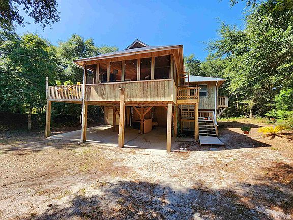 Wow!! Offered at $399,000! Just barely under an acre lot located in the Beautiful Buxton Woods! Nestled in a private location, this prestigious property offers 2 bedrooms, 2 full bathrooms and an additional attached 924 sq. ft. workshop/1 car garage under the home. Endless possibilities! Both bedrooms have large closets with tons of storage space. The open kitchen/dining/living area is centralized with bedrooms on either side of the living space. Lovely outside living area in the expansive screened porch with attic access to the large attic space. The wrap around porches connect the generous sundeck, which is great for soaking up all the southern exposure, to the smaller covered back porch and steps down to the back yard. This 43,500 sq. ft lot is perfect for entertaining, gardening, space for children and pets to play! High elevation, X & Shaded X Flood Zones, no flood insurance required! This quiet and secluded location is very private, yet only minutes from the Ocean and Sound access for all water enthusiast activities, dining, shopping and entertainment that the Village of Buxton has to offer. Perfect opportunity for a year round residence, or 2nd home get away! Totally renovated throughout in 2016/2017 including new roof, complete new kitchen, new bathrooms, new flooring, new appliances, new light fixtures & ceiling fans throughout, new interior paint. Propane Water Heater and gas stove, Kraftmaid kitchen cabinets, LVP throughout the home, laundry room with washer/dryer hookups. 8x10 Storage Shed conveys. Lightning Rods. Seller requests that all buyers must have a proof of funds or pre approval to view the property. The home is configured as a 2 bedroom, but the Dare County Septic Permit on file is for a 3 bedroom. Don't miss out, this one will go quickly! Call Today!