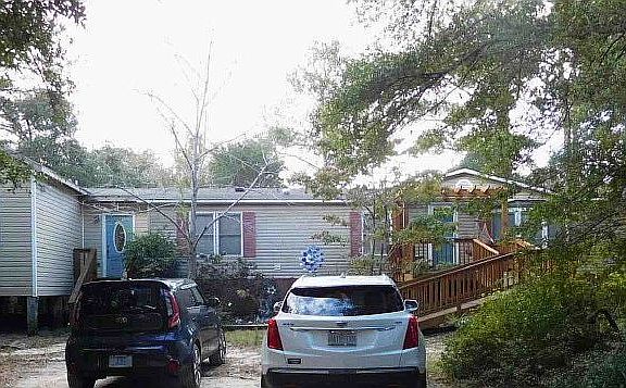 Lovely wooded lot on a quiet neighborhood cul-de-sac. Stay off the beaten path and still be on the beach in minutes. 5 bedroom 3 bathroom house with two master bedrooms and two full living rooms. The front living room and master bedroom could easily be converted into an apartment with its own separate entrance for extra income. Part modular home with a gorgeous high ceiling. Stick built in 2008 900sqft addition with 9ft ceilings. Spacious pantry and walk-in closets give you room to keep the whole family happy. The back yard overlooks a quaint little pond area. Front deck with wooden ramp makes the home handicapped accessible. Large wired and insulated shop with large attic for storage, built-in workbenches to make those dream woodworking projects a breeze. Custom built kitchen cabinets, newly renovated bathrooms, new flooring through kitchen, dining and living room. Bamboo flooring in the main master with room for office or sitting room. New roof in 2016, new hot water heater in 2020. Not in a flood zone.