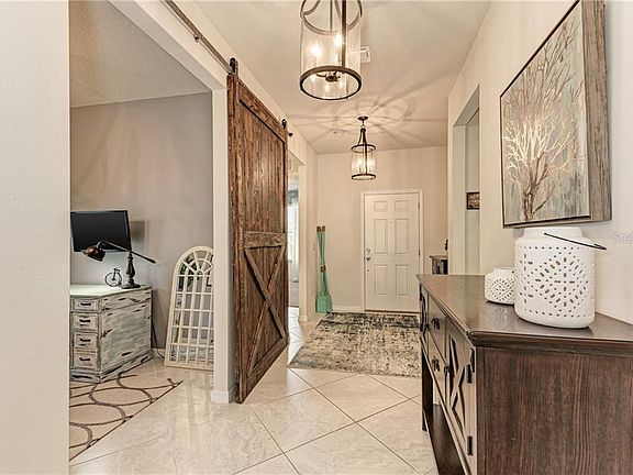 Pride of ownership shows in this well-maintained home located in the exclusively gated section in Harrison Ranch. This 2 bed/2 bath + bonus room sits on a large fenced lot w/ preserve views and has minimal traffic because it's on a quiet cul-de-sac street. The upgrades start outside with the well-manicured landscaping and the screened front entry. Built in 2017, this home looks brand new and has many extras that are not included in new homes- Custom barn door on office, built-in California Closets, custom privacy Bali shade on living room slider, upgraded blinds on every window, outdoor lighting package with 2 sets of flood lights, and 22" tile diagonally placed throughout the main living areas. The custom gourmet kitchen features stainless steel appliances, under cabinet lighting, granite counters, tile backsplash, a large island, cabinets w/crown molding and a double oven. This home is great for entertaining with a kitchen that opens up to a spacious family room. The master bedroom has a large walk-in closet and a master bathroom with granite counters, dual sinks, and a large walk-in Roman shower. The split floor plan puts the other bedroom and bathroom on the other end of the house. There is also a bonus room at the front of the house, which is perfect for a home office, gym or playroom. It could also be converted into a 3rd bedroom. Enjoy sitting out on your screened lanai and watching your kids or pets play in your large, fenced in backyard! The oversized laundry room has custom built in cabinets and shelving. The garage is a 3 car tandem, 34' long with 4' extension, providing plenty of space for a boat or golf cart! The owners added the upgraded electrical option in the garage, which includes 4 additional outlets, perfect for charging batteries for your toys! The home is equipped with hurricane shutters, gutters, and an irrigation system. The entire home is electrical smart wired! Recent school rezoning has Harrison Ranch going to a brand new Elementary & High School, as well as a highly rated middle school. Access to private pool within Normande East gated section, as well as the main amenities. Harrison Ranch offers a gorgeous community center with a Jr Olympic swimming pool, fitness center, conference room, game room, media room, catering kitchen, lighted tennis courts, multi purpose recreation field and BBQ Pavilion, playground, over 5.5 miles of walking trails & an activities director who plans community events. Easy commute to Bradenton, Sarasota, St Petersburg or Tampa and short drive to several beaches.