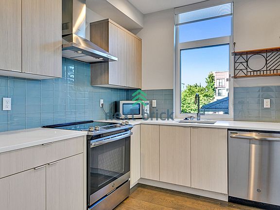 Modern and stylish two-bedroom townhome with AC, private outdoor spaces, and an ideal layout just steps from the Columbia City Light Rail. The first floor includes a bedroom with ensuite bath, in-unit washer and dryer, wet bar, and direct access to a fully fenced, low-maintenance backyard with patio and garden space. The second floor features a sunlit living area with oversized windows and a sleek kitchen with stainless steel appliances. The top floor offers a spacious primary bedroom with vaulted ceilings, ensuite bath with walk-in shower, blackout and light-filtering shades, a large balcony, and bonus storage above the walk-in closet. Built Green 4-Star with quiet, energy-efficient mini-splits and sound-reducing double drywall construction. Located in one of Seattle's most desirable neighborhoods, you're just minutes from cafes, restaurants, shops, live music, the farmers market, and easy transit to downtown and the airport. This home blends comfort, convenience, and modern living.