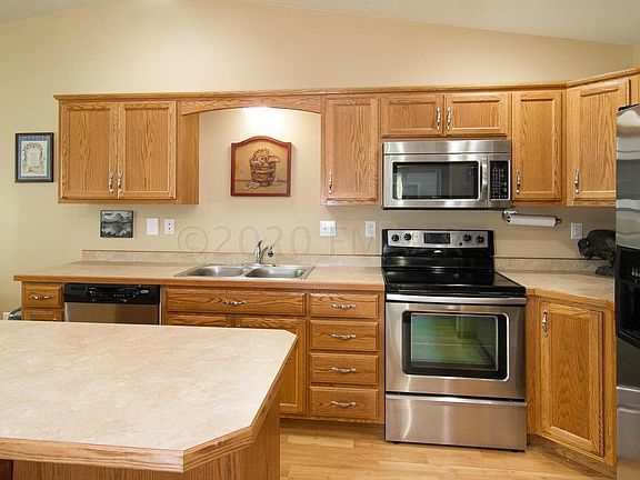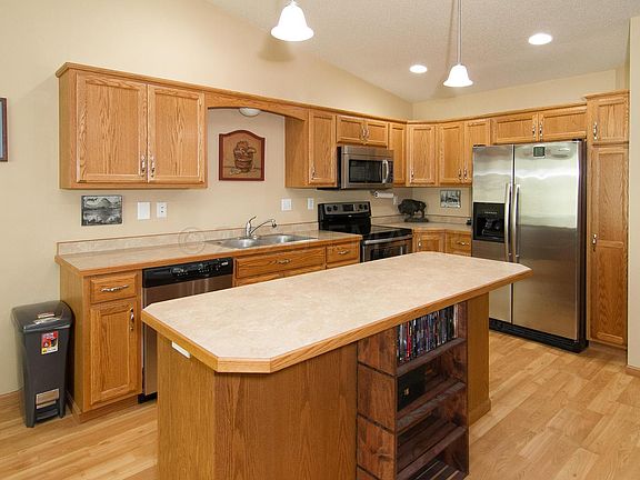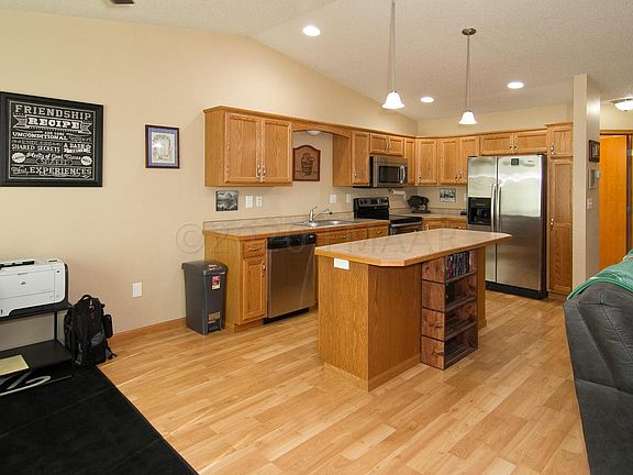 Check out this JV Hough built twinhome in a great location. Alley access with rear attached garage. Open, vaulted design with center island, laminate floors and stainless steel appliances. South facing side deck.Great condition. Even more affordable now with low interest rates!