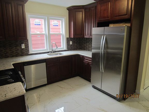 OPEN HOUSE SUNDAY JANUARY 22nd 2017 1pm -2pm --This house is gorgeous! 3 Bedrooms duplex & 2.5 bathrooms with full finished basement area. The very large spacious eat in kitchen has lovely cherry colored cabinets and brand new stainless steel appliances ( Refrigerator, Range, over the range oven, Dishwasher) . Large Formal Dining room. backyard with detached garage. Everything is brand new! Including the new roof, All new windows, new Boiler, new hot water heater, new plumbing, Washer & Dryer, and new bathrooms. This house will not last. FHA Approved! Call or text 347-693-9202.