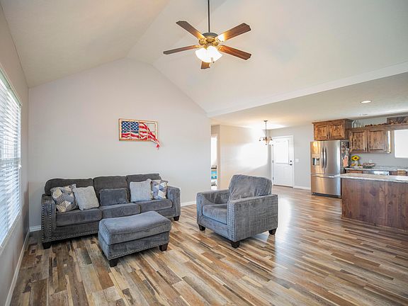 This well-kept 3-bedroom, 2-bathroom home in Bolivar's Karlin Acres North offers 1,388 sq. ft. of comfortable living. The house has a partial brick exterior and a roof that's only a year old, giving it great curb appeal and reliability. With an attached 2-car garage, all-electric utilities, and a recently serviced HVAC system, the home is efficient and practical. Inside, you will find open concept living, vaulted ceiling, upgraded light fixtures, ceiling fans, and new luxury vinyl plank flooring in the main living areas. The kitchen includes a newer refrigerator and a brand-new garbage disposal for added convenience. Primary suite offers tray ceiling, a double vanity and walk in shower. The backyard features a covered patio, perfect for relaxing or entertaining, and backs up to an undeveloped field, offering privacy and a quiet setting. This home has been meticulously maintained and is move-in ready, making it a great choice in the Bolivar area.