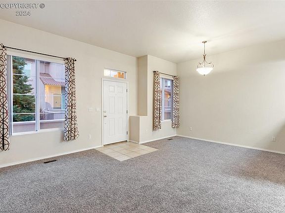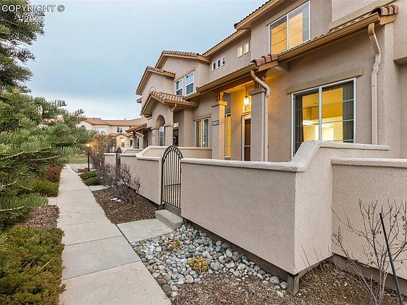 Welcome to the Courtyards at Newport Heights, a highly sought-after gated community in Colorado Springs, offering a stunning Spanish-style, Caribbean-inspired townhome with modern upgrades. This move-in-ready home features brand-new carpet, a newer garage door and opener, and a recently installed furnace and air conditioner for ultimate comfort. The spacious master suite includes a luxurious garden tub, a large walk-in closet with custom built-ins, and plenty of room to unwind. The 2-car attached garage adds convenience, while the private veranda invites you to relax and enjoy breathtaking Colorado sunsets. Perfectly located just 4.8 miles from I-25 and 2 miles from North Powers Blvd, you'll have easy access to Denver, Castle Rock, and the city’s best shopping, dining, and recreation. Nearby amenities include Cottonwood Creek and Sunset Mesa Parks, local favorites like the Skirted Heifer, and the Wagon Trails Recreational Association. Don’t miss the chance to call this rare gem home!