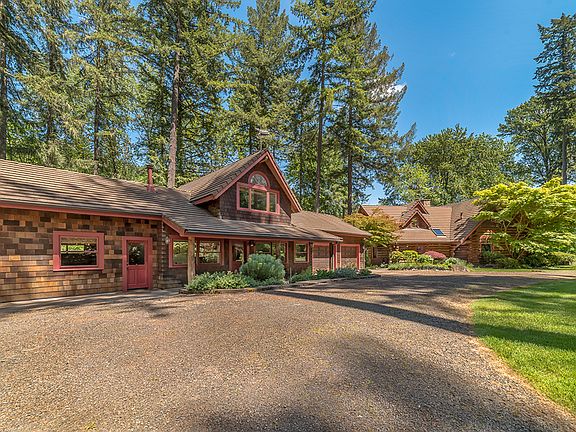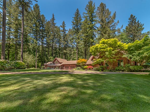 Majestic McKenzie River Estate featuring an unparalleled setting with over 400' of McKenzie River frontage. Authentic log home with gated entrance boasting privacy and serenity. Beautifully manicured lush landscaping and large private pond with casting dock in front of home allowing 360 degrees of water views. East Wing provides main living quarters with a fully updated gourmet kitchen featuring leathered granite countertops, stainless steel appliances, copper sink and thoughtful design. Custom McKenzie River rock wood-burning fireplace in great room and custom woodwork throughout. West wing has been fully updated and provides private guest bedrooms, including small kitchenette, full bath, offices and media room. Property also includes detached boathouse for rafts/kayaks, professional dog kennel, boat access, large deck with hot tub & built-in BBQ and is fully irrigated with water rights.