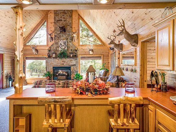 This immaculate true log home is one of a kind. Featuring 3 bedrooms 2 baths, spruce wood throughout, huge fireplace, split floor plan, covered back porch, mature trees, and pond all on 50 acres+/-. Property is secluded and wooded for great hunting and recreation of all kinds. 48x37 Shop Building with 48x15 shed off. A must see property.