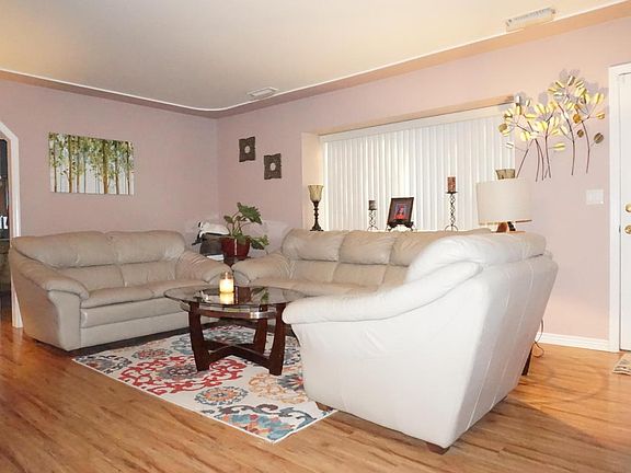 This lovely home has 2 bedrooms,2 bathrooms, master bedroom is great size. New floors (no carpet). Well maintained. nice hot tub outside in the back yard.Lots of storage. Garage has work desk and storage. RV parking on the side of the home with water and electricity hook ups.Must see to appreciate.