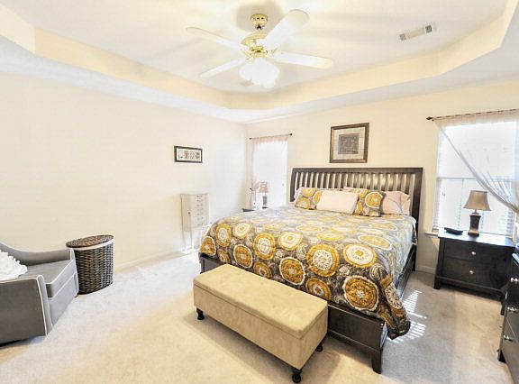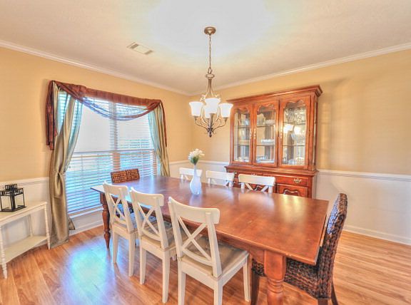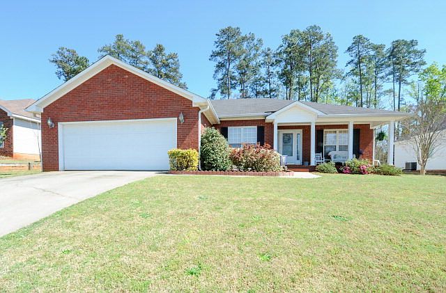 Welcome home with a charming rocking chair front porch! Foyer w/ceramic tile floors! Living rm w/gas fireplace & nice laminate wood floors! Dining rm also with wood flooring! Kitchen w/breakfast bar, breakfast rm, built in microwave & refrigerator negotiable! Owners suite w/tray ceiling, dlble sink vanity, great soaking tub plus separate shower & nice walk in closet! Split bedroom plan! Laundry rm w/washer dryer negotiable! Yard partially fenced & could easily be completed. Sprinkler system, great deck for grilling, gutters, storm doors & more!
