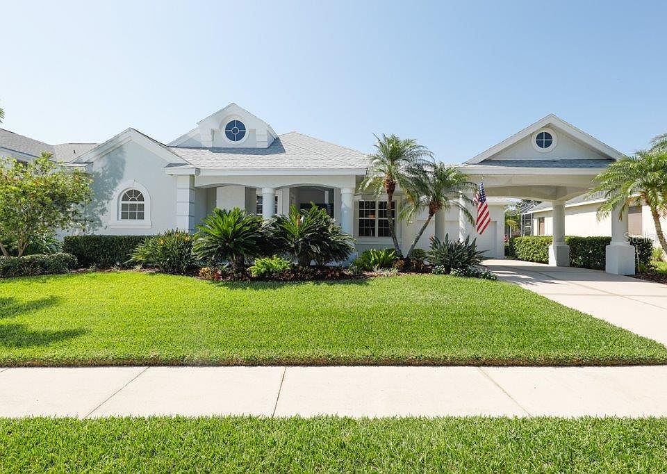 Beautiful updated waterfront pool home with boat dock in premier boating community of The Inlets! Clean coastal style with front & rear porches, 2 Master Suites, 3rd guest suite or Office, 3 baths, Great Room, Dining Room and Breakfast area. Spacious and bright open plan with 10 ft ceilings, new 20" diagonal tile in main living areas. Large Kitchen with white cabinets, dark counters, new SS appliances, natural gas range, pantry and breakfast bar open to Great Room and outdoor living spaces. Master with double closets, bath with large walk in tile shower, garden tub, dual sinks, and private toilet. Enjoy Florida living and dining in the covered lanai, paver patio and resurfaced pool from 4 sliding doors and the pool bath. Perfect orientation for beautiful sunsets! Tropical landscaping, rear yard with paver path to dock. Garage with 10 ft ceiling, and attic pull down access storage. New roof in 2019, 14 Seer HVAC system in 2018, new pool pump in 2015, hurricane screens for large covered Lanai and sliders. Welcome to paradise, bring your boat and enjoy the best of Florida lifestyle! 75 ft seawall with dock area for up to a 36 ft boat with power and water to enjoy boating, fishing, and visiting local venues by boat. Access to Manatee River, & Gulf, many social activities, tennis, walking trails, fishing dock, kayak launch, & playground. Easy access, near I-75 & SR64, just 6 nautical miles to Tampa Bay, 12 mi to Gulf, close to airports, restaurants, shopping, beaches, Sarasota, St. Pete & Tampa. No CDD, low HOA & low flood insurance.