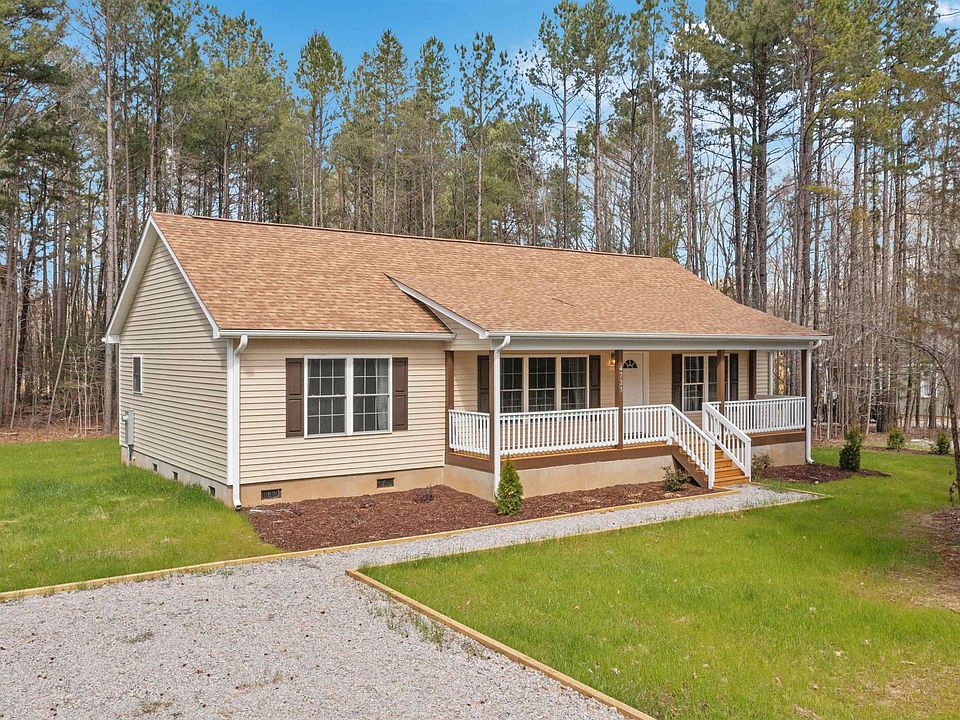 Back on the market! Bring your boat! And your camper! Walking distance to Kerr Lake with no HOA. This property would be the perfect Lake Getaway or short term rental. Ranch 3 bedroom 2 bath, never lived in home tucked away on almost an acre of land. Nice rocking chair front porch, quiet back yard, with a deck overlooking the woods. Appliances in the home convey. Move in Ready just in time for Summer!