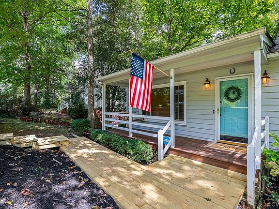 Nestled in the heart of Chesterfield, this charming 3 bedroom, 2 bath ranch style home has been updated with all the features you've been looking for. The open concept living and dining area is warm and inviting featuring beautiful hardwood flooring, a cozy brick fireplace, and access to the kitchen. The kitchen is equipped with butcher block countertops and ample pantry space. The primary bedroom is spacious and has an en-suite bath filled with updated finishes. Two additional guest bedrooms with generous closet space and a charming hallway bathroom round out the interior of this home. The large rear deck is the perfect place to relax and enjoy the privacy of your own wooded lot. A full front porch, newly painted exterior, and 2 car gravel driveway complete the outside of this move-in ready home. Conveniently located just minutes to 288 and Courthouse Rd, this home makes any commute a breeze.