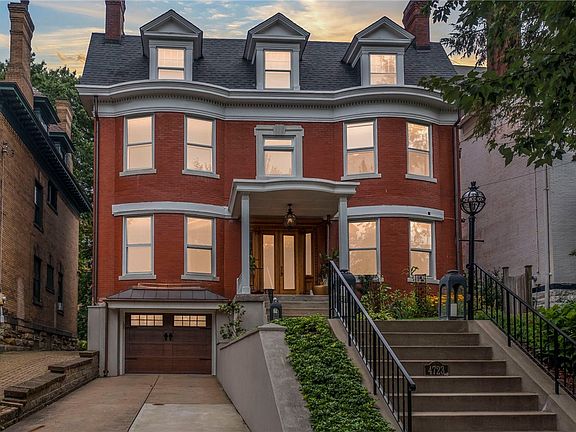 Fab West Shadyside center hall colonial offers style, space, & updates throughout 3 floors plus amazing outdoor living area. Modern living with classic elegance. Covered porch, leaded glass vestibule lead to spacious wood paneled foyer flanked by bright living & family rooms. Wide doorways, pocket doors. New center island kitchen: leathered quartzite countertops, Bosch/Miele/Dacor appliances, heated floors. AMAZING light fixtures throughout. French doors lead from dining room to rear covered deck. Grand staircase to 2nd floor. LAYOUT: 4BR/2BA. 4th BR used as office, has laundry. Light, bright huge 3rd floor with pickled pine floors, 3 more BRs + full bath + den. More serenity awaits you outside - to die for new covered deck with skylights & paddle fans spans the length of the house, overlooks beautifully landscaped private backyard. 2 car integral garage. Zoned HVAC. Walk to work at CMU, PITT, UPMC. Walk to shopping on Walnut St, dining on Craig St, museums too! Some TVs included.
