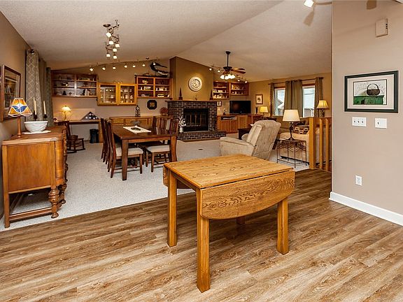 Looking for a backyard oasis backing to a bike path? This 3 bedroom, 2 bath, 2 car attached garage home on quiet Urbandale cul-de-sac has just that. Open main level features large family room w/ vaulted ceiling, real wood burning fireplace situation between custom built-ins and desk area. Formal dining room area opens to kitchen with tons of cabinetry and countertop space which features new flooring. Main level master bedroom w/ walk-in closet and full bath. You may not want to leave the cozy 3 seasons porch. The finished lower level has two other good sized bedrooms, full bathroom, and laundry room. Mature trees, extensive landscaping, new deck, three sheds (including one under the deck), garden and bike path. This home has been cared for and loved...it is a must see!