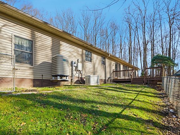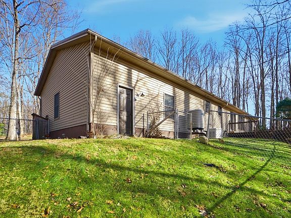 Located off a picturesque country road. Stunning private, secluded, wooded setting. Nature lovers delight. Ranch with an open floor plan built on crawl is situated on 5 acres. Also features the following: Small cabin with electric & water spigot, dog kennel, chicken coop, swing on covered porch, & plenty of walking trails. Split bedroom design with 3 bedrooms with 2 full bath & study. Front entry 2.5 car garage space with an extra parking pad. Quart kitchen counter tops, new stainless steel 4 burner gas stove, refrigerator, dishwasher all stay, farmhouse sink & a walk-in kitchen pantry. Great room with vaulted ceiling and stove. 22 X 13 dining area also features a vaulted ceiling, French doors, lovely chandelier & wooded nature view. Hard surface flooring throughout. Whole house generator, oversized garage has an electric vehicle charging station, insulated windows & more. An array of amenities too numerous to list. Good value...compare. Must see.