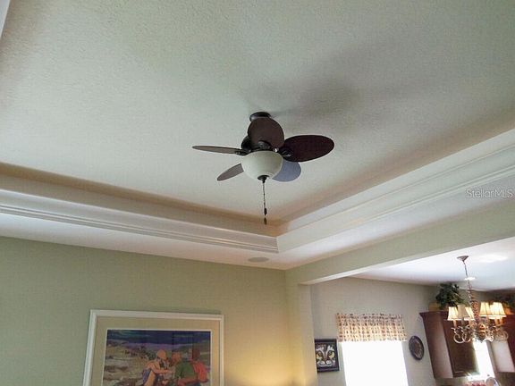 - Interior Features: Ceiling Fans(s), High Ceiling(s), Master Bedroom Downstairs, Crown Molding, Walk-In Closet(s), Window Treatments, Open Floorplan, Solid Surface Counters, Solid Wood Cabinets, Eating Space In Kitchen, Tray Ceiling(s), Coffered Ceiling(s), Thermostat