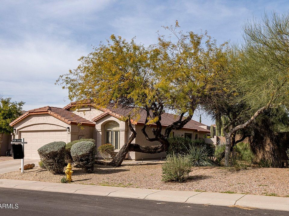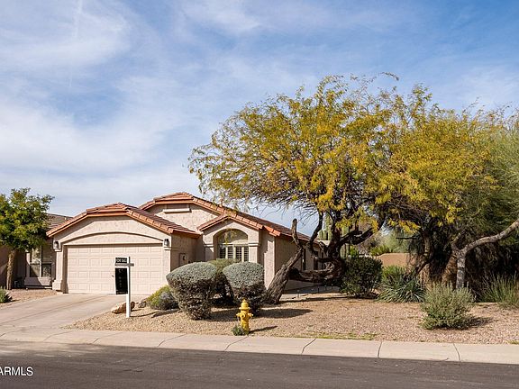 Great location within walking distance of Desert Ridge Marketplace! This private home has 3 bedrooms plus a den, a split floor plan and sits on a corner lot with desert landscaping. All new floors, fresh paint, and the newly updated master bathroom are some of the features this home has to offer. This home is located in the highly acclaimed PV school district. High block wall surrounding the back yard makes for a very private yard with a Pebble Tec pool.