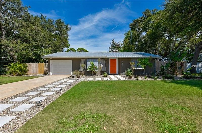 Enjoy the quality & comfort of this charming ranch style renovation in the heart of Sarasota! Light and bright with vaulted ceilings, LED recessed lighting throughout and custom Elfa closet systems in both BR's. Large chefs kitchen with LG stainless steel appliances, quartz countertops, high gloss white cabinetry and a beautiful glass tiled backsplash complete the modern feel. French doors open out from the breakfast bar to a charming patio and pergola perfect for relaxing or entertaining in your resort style outdoor living space. Located in the highly sought after Sarasota Middle School and Riverview School District and equipped with hurricane rated doors and Bermuda exterior metal hurricane shutters. This unique home is just minutes to the Gulf beaches, come relax and soak in a peaceful Florida sunset!