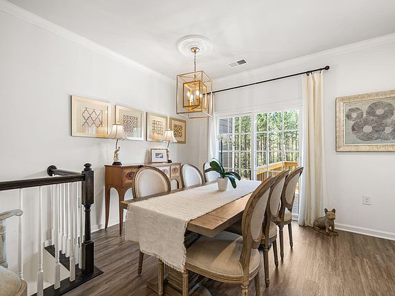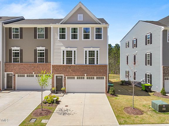 Open Houses Cancelled. Stunning 3 bed/2.5 bath townhome conveniently located within minutes of UNC/DUKE and the RTP. This light filled end unit on a premium lot stands out as a refreshing offering with upgraded designer lighting, crown moldings and wood shelving in the pantry! Entertain with ease in the open concept living area and gourmet kitchen w quartz countertops and SS appliances. Enjoy indoor dining or al fresco on the deck surrounded by beautiful nature views. All bedrooms are on the top level for privacy including the primary with WIC and ensuite and laundry closet just steps away! The additional flex space is great for movie night, yoga or an at home office with easy access to the private fenced in back patio/yard. Large 2 car garage and lots of storage options. This unit is gorgeous - don't miss out!!