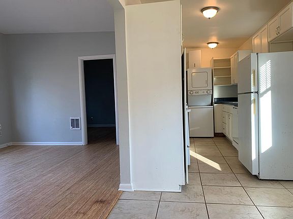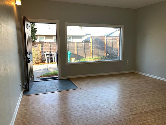 Reed College 4724 S.E. 37th Happening 2-bedroom unit in a 1950s duplex 800 sq ft. o Gorgeous bamboo flooring throughout. o Kitchen with dishwasher, lots of cabinets, sleek counter tops, and stack washer and dryer o Generous master bedroom with large closet o Huge 2nd office/bedroom/studio with sliding glass doors and large closet. o Completely updated bathroom with new tub surround and vanity. o Freshly painted o Off street parking, great location o Cats okay but no dogs. Please note that the bathroom is accessed through one of the bedrooms so the layout is not ideal for roommates. Not a type A accessible unit. Tenant pays electricity. Water, sewer, and garbage are included in the rent.