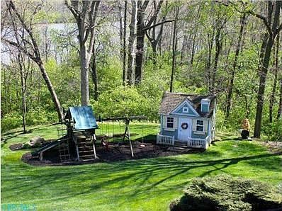 Serene views of the river & woods. Rolling lawn down to boat dock (has hoist). Summer just got better! Warm welcoming home perfect for entertaining or relaxing. Two story + great rm w/wall of glass, river rock FP, walk-in wine closet. Four doors to decking. Granite kit w/2 Sub-Zeros flows to garden rm w/brk FP. Floor to ceiling glass in walk-out LL - pool rm, media rm, guest rm, shwr BA, full kit. Whirlp master w/2 closets (one is 20' +). LL paver patio w/firepit. Playhouse!