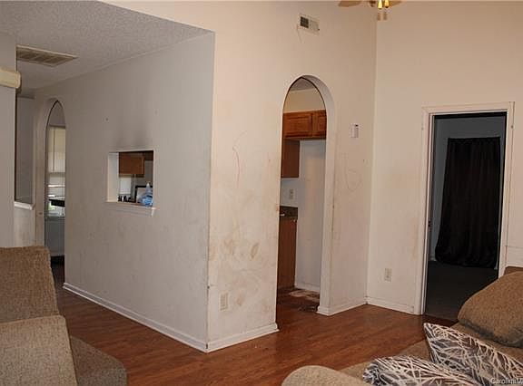 Calling all investors! With just some slight renovations could be a real beauty. Mainly cosmetic. This 3 Bedroom 2 Bath Split Floor Plan home has Cathedral ceilings in Great Room and Master Bedroom. Arched Doorways are a part of this Home...Beautiful Fireplace with TV nook above it. Laminate wood floors in main areas...Master is spacious and Master Bath has a Garden Tub. Sits on a large flat lot. This home is convenient to Downtown Charlotte I-85 and I-77...Shop at nearby Northlake Mall and enjoy Nevin Park. Sold As-Is. No HOA