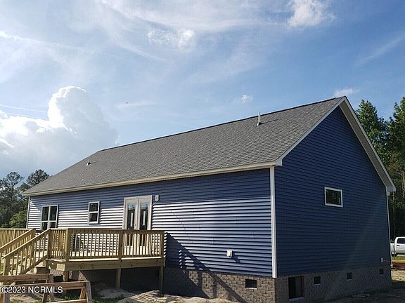 This is a simply beautiful 3 bedroom home. The exterior features an extended covered front porch, beautiful blue vinyl and a cream colored shaker to accent the dormers. There is also a large back deck, great for having company or enjoying the outdoors alone. The interior of the home includes: LVP flooring,carpet in the bedrooms, handmade cabinetry, stainless steel appliances, and granite countertops. The master bedroom is strategically located opposite from the other bedrooms and features a roomy walk in closet, double vanity in the bathroom and separate walk in shower and spacious tub. Located adjacent to the other two bedrooms is a full bath with a tub/shower. I would be remiss if I didn't mention the eat-in bar island in the kitchen and the separate laundry room, that makes this home complete.
