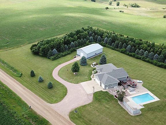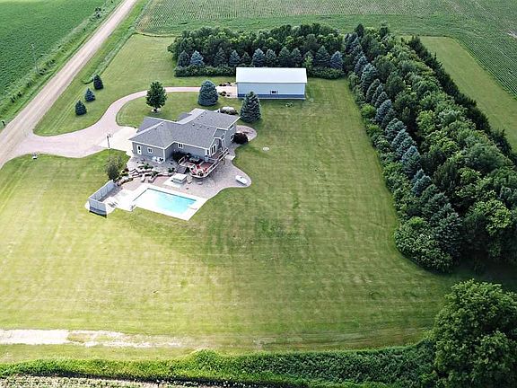 Stunning south facing 4 bedroom, 3 ½ bath Ranch style home located on 5 acres! You get the feeling of wide open, unlimited views from the wrap around 2 level Trex maintenance free deck overlooking an 18x36 in-ground pool. Very nice grove of trees, plus beautiful landscaping. 36x60 metal building with 2/3 cement floor, water hookup, built-in cabinets, and a 12' overhead door. This home has a large oak kitchen with Cambria countertops, 3 bedrooms and the laundry on the main, 2 fireplaces, and a walkout family room. The triple garage is heated and has built-in cabinets. Recent updates include siding, shingles, and heat pump. This home shows very well. If you like quiet, country living with minimal traffic, this is your home and a great place to entertain a lot of people.