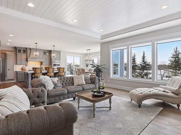 Stunning two-story former model home on 2.3 acres in the Lakeview neighborhood. Loaded with amenities and custom details, this open concept plan is perfect for everyday living as well as entertaining. The main level offers a gourmet kitchen with Viking appliances and quartz countertops, and a great room with a raised beam ceiling and stone fireplace. Additional features on the main level include an office/den, flex room, mudroom with lockers, and a walk-in pantry. The upper level consists of four spacious bedrooms including the luxurious owner’s suite with a beautiful bath and walk-in closet, and laundry room. The lower level has it all! Entertain in the large family room with a wet bar and game area, play in the sport court or workout in the exercise room. Exceptionally landscaped with a patio, front porch and deck. Located near Lake Minnetonka and just minutes from the city. 4.5-acre neighborhood park and walking trails.