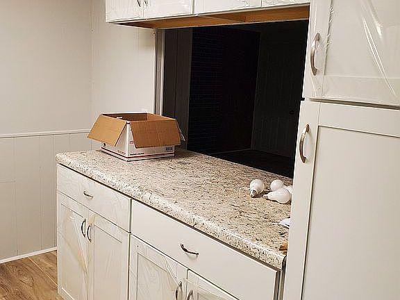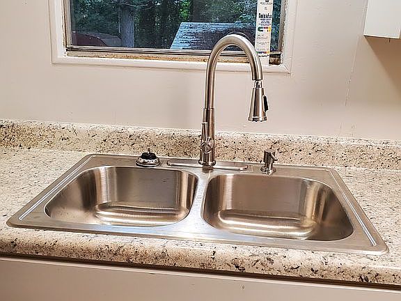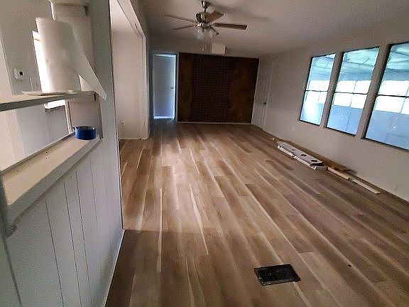 Established lawn and trees for shade covers this beautiful 0.64 acre corner lot. Settled at the back of a private corner lot is a 3 bedroom with 2 full baths double wide mobile home. It has a completely refurbished 2023 interior. New decorative skirting and all new interior to include new cabinets and counter tops in kitchen and both full bathrooms. The house consists of a large living room, breakfast and laundry area, master bedroom with two additional bedrooms and 20x8 sunroom. Master bathroom has a separate double vanity area. Both bathrooms have new tub/shower combinations. The small eating area is adjacent to the kitchen. There is also a breakfast bar adjacent to the living room. New LVP flooring and fresh interior paint with a modern accent wall in the living room. There is a large deck and concrete pad for outdoor space. Covered parking for two cars and a gravel driveway.