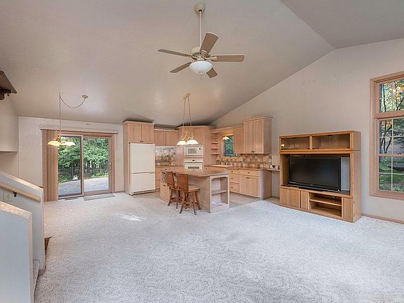 Just miles from downtown Eagle River, this 2,000sf, open concept home is nestled into the woods, sitting peacefully off the shoreline of Mud Creek. Custom built by a local contractor, youll love the multiple levels of living space (perfect for entertaining), the wonderful windows that bring in lots of natural light, the spacious primary bedroom & tons of storage. The exterior is just as fabulous. There is a large, fenced in area, perfect for all & the stonework on the home, the patios, the landscaping, gardens & firepit come together to create a dream outdoor space. The 198 of creek frontage ensures loads of wildlife for the nature lover. The 2-car garage at the end of the blacktop driveway is attached, insulated & offers in-floor heat that carries into the family room & bath on that level. Vacation house or new home base, either way, this home is PERFECT! AND the seller is planting trees for a privacy buffer bc they built right next door..that is how much they love this location!