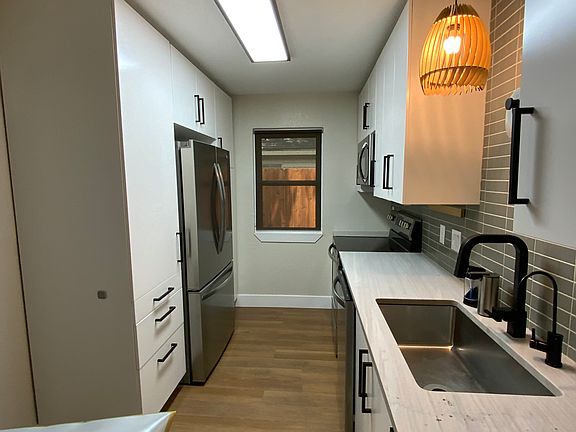 3 bedrooms, 2 bath, 2 car garage with privacy fenced in back yard. Kitchen includes a wine refrigerator, stove, dishwasher, and refrigerator. Bathrooms are both extremely Plush! Kitchen will wow you with all of the cabinets and pull out- drawers - It's just beautiful!