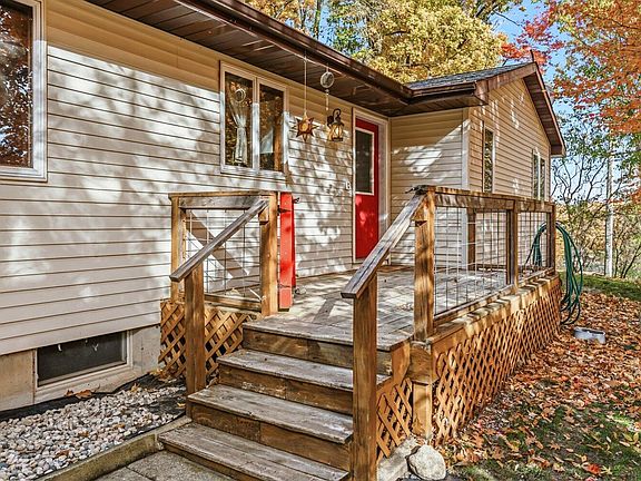 PRICE REDUCTION!!! COME CHECK OUT THIS BEAUTIFUL HOME AND PROPERTY Must see this beautiful 3 bed 2 bath, home on 3.61 acres. Its nestled on a spectacular hill top over looking Head Lake, You have a beautiful view from primary bedroom and the covered deck off living room, which is a huge gorgeous living room. Primary bedroom has a full bathroom. New flooring, new stairs into basement, new landscaping and fresh paint. This full finished basement has an extra room that could be exercise room, office, bedroom, anything you want. The property is awesome, the huge front yard is just beautiful. There is underground fencing that will stay with the dog collars . There is a nice big attached 2 car garage. There are 3 sheds, but one has been converted into chicken coop that seller will be taking but other two sheds will remain