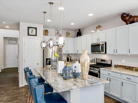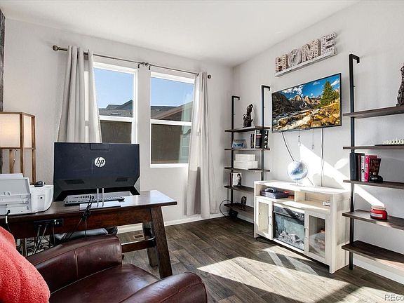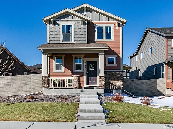 It is the details of this gorgeous, newly built home that you will get lost in! Entering the home, you can't help but notice all of the natural light that floods the home from the vaulted ceilings in the main entryway. Immediately upon being greeted into this spacious home, you will notice the main floor flex/office space, with a striking accent wall, and plenty of room to create the perfect remote work or learning space. When it's time to transition from work to play, the open living and kitchen/dining room space is the perfect place to retreat. With a custom, board and batten wall in the living room that will wow any guests, this home is also perfect for entertaining! The upper level of this home continues to impress! The primary suite includes attached en-suite with oversized shower and bench. You will notice this home has 3 additional bedrooms on the upper level, with upstairs laundry to make laundry day a breeze! Additional exterior features of this home are 2 side yards, one complete with a concrete patio, and removable canvas covering. The second side yard is unfinished and can be customized to your own plans. Attached, 2 car garage will keep you from having to clear off snow in the beautiful Colorado winters, making for a quick escape to all the outdoor fun our state has to offer! This home is located near several major interstates, making for easy access to the City, or our beautiful Rocky Mountains.