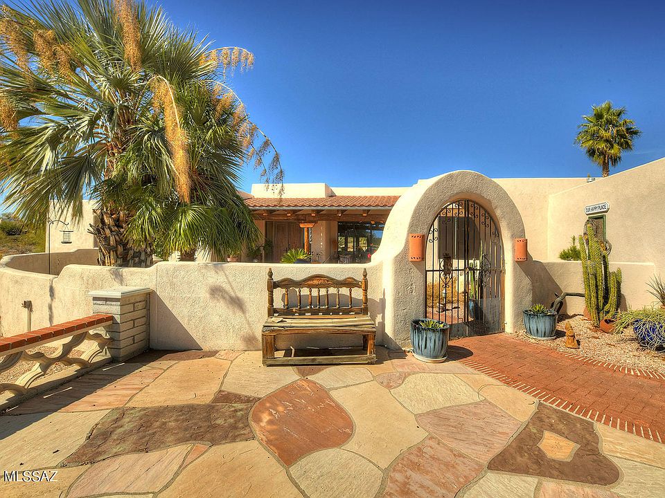 * Well built southwestern design 3bdr 4ba plus office. Home on corner cul-de-sac lot. 3428 sq ft. Hi ceilings w/latillas and viga beams. Very open comfortable floorplan. City views from floor to ceiling windows & from din rm, office & 2nd bdrm. Designer Kitchen counters w/black leathered granite & natural edges. Black SS appliances. Roll out shelves. Gas cook top, dble ovens, micro wave. New HE washer/dryer. Custom interior doors. 2 fireplaces (one in great rm and one in master bdrm.) Master bath updated. Zoned AC & heat. 2 water heaters. Sun shades on all windows. New roof & exterior paint in 2020. Spacious 3 car garage w/workshop & abundant storage. All storage cabinets w/roll out shelves .Gated entry crtyd. Front & rear covered porch. Pool.ENTER 2ND DRIVEWAY FOR EASY EXIT.