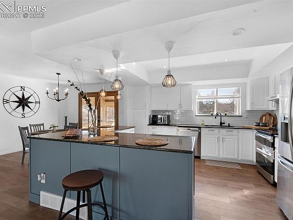 Welcome to your dream home! This stunning bi-level residence, fully remodeled in 2023, offers a perfect blend of modern luxury and timeless elegance. The exterior has been given a fresh look with a recently painted deck and siding, enhancing curb appeal and ensuring a lasting first impression. Step into the grand open floor plan that seamlessly connects the living, dining, & kitchen areas, creating an inviting and spacious atmosphere for both everyday living and entertaining. The entire home has been transformed with meticulous attention to detail, featuring brand-new durable 1/2" engineered flooring throughout adding a touch of sophistication to every room. A laundry chute and central vacuum added for ease of living. Each bath has been beautifully remodeled with modern touches. The heart of this home is the chef-worthy kitchen which is sure to impress, boasting granite countertops, state-of-the-art appliances, & ample storage space. Experience relaxation in the sunroom, complete with a Jacuzzi that offers a private oasis for unwinding after a long day. Imagine soaking in the soothing waters while enjoying panoramic views of the mountains – a perfect retreat in the comfort of your own home. 2 cozy fireplaces, one on each level, offer warmth and ambience. Three upstairs bedrooms and another on the lower level allow plenty of space for everyone. The primary retreat has a convenient en-suite. Situated on a large lot with automatic sprinklers, this property not only provides ample outdoor space but also boasts breathtaking mountain views, creating a picturesque backdrop for your daily life. An oversized garage provides space for multiple vehicles or additional storage, and features floor coating for easy cleanup. Convenience meets nature - this home is situated near the Austin Bluffs Open Space & Palmer Park with easy access to outdoor activities, hiking trails, and natural beauty, making it a haven for nature lovers. Welcome home!