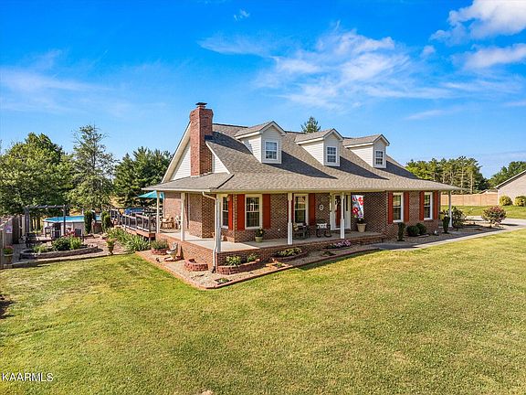 ENJOY THE SPECTACULAR MOUNTAIN VIEWS FROM YOUR WRAP AROUND FRONT PORCH! Don't' miss your opportunity to own this beautiful Cape Cod style home situated on an immaculately manicured 1 acre lot, facing the majestic Smoky Mountains. The spacious family room provides the perfect space to relax with your loved ones or entertain large groups. The dining room, open to the family room, overlooks the backyard paradise space that is waiting for you to enjoy. The well-appointed kitchen with black SS appliances is sure to please the chef in your family. The large owner's suite on the main level offers 2 closets a private bath and has a personal entrance from a small front porch. The second-floor features 2 large secondary bedrooms and full bath. The ''smart'' thermostat and outlets that are in the home and the outdoor camera convey with the property. The FP gas logs remain but the propane tank was removed because it was rarely used. The larger storage shed is being moved and does not convey. The only outdoor furniture that conveys are the Adirondack chairs around the firepit.