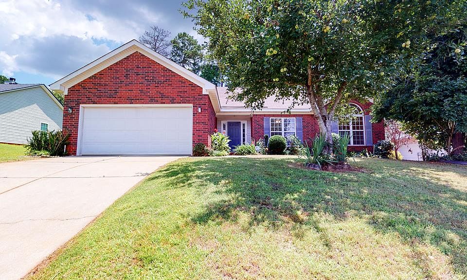 Adorable brick, ranch style home in the Heart of Evans Home features 3 bedrooms, 2 baths and 1701 sqft. Owner's bath with double sink, separate garden tub & shower. Owner's bedroom with trey ceiling, greatroom with cathedral ceiling, double garage. 2nd bedroom with cathedral ceiling and beautiful palladian window. Back patio and covered porch lead from kitchen. Spacious backyard with privacy fence. Beautiful fruit trees: fig, peach, apple, pomegranate and rare loquat. Must See!