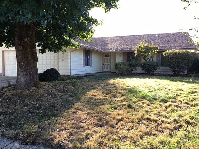 UPDATED and MOVE-IN READY! This corner lot has a wonderful floor plan with separate living, family and dining areas that still all flow together easily. All new last month: roof (!), water heater, carpet, vinyl, counters, appliances, interior paint, sinks, faucets, lights, toilets, even door handles! Floor-to-ceiling brick fireplace welcomes guests into the sunken living area as they enter. 2 bedrooms close to bath with tub and master has dual closets and bath with shower en-suite. Over-sized driveway with room for RV. 3 patios,included one covered and one off the master. Vinyl windows and 3 sliders create a ton of natural light. Workbench in garage. Mature apple tree and over-sized lot. Heat pump / AC. ***Will work with buyers' agents***