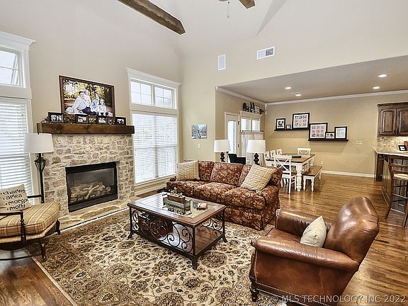 Beautiful Trinity Creek Home That Checks All the Boxes! 3 Car Garage. Extensive Hardwoods. Vltd, Beamed Living w/Fireplace. HUGE Kit w/Tons of Cab's, HUGE Granite Eating Bar & Pantry Open to Brkfst Nk and Living. Formal Dining. XL Vltd Office w/Built-Ins. Mstr Suite w/Two Walk-Ins, Dbl Vanities, Whirlpl & Sep Shower. Gamerm w/Juliet Balcony. Guest BR w/Private Bath. Two BR's w/Jack & Jill Bath. Utility Rm w/Sink and Granite. Nice Size Cov'd Patio. Sprinkler System. Surround Sound. Full Brick. Must See!