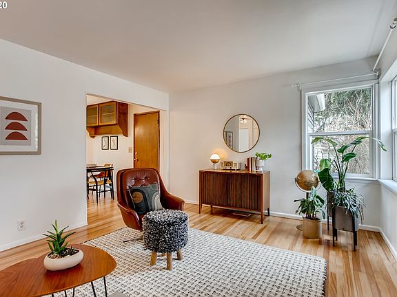 An oasis in the city! This sweet 1949 Ranch close to Woodstock Park & school sits high on an incredible over-sized city lot perfect for the urban farmer or gardener. Bright & light-filled w/beautiful hardwood floors, nicely sized bedrooms & kitchen with ample storage space. Freshly updated bathroom and new paint inside and out! Step out to the covered patio into the well-loved and magical backyard with lilacs, peonies, roses, raised gardens beds, mature fruit trees and so much more. [Home Energy Score = 3. HES Report at https://rpt.greenbuildingregistry.com/hes/OR10043072]