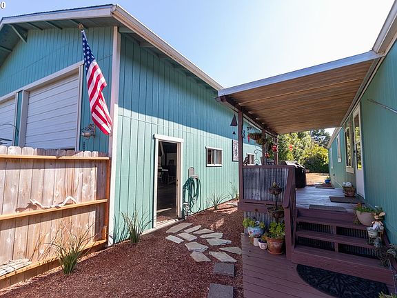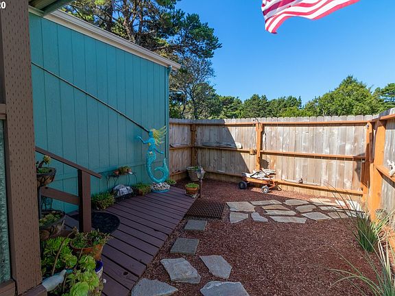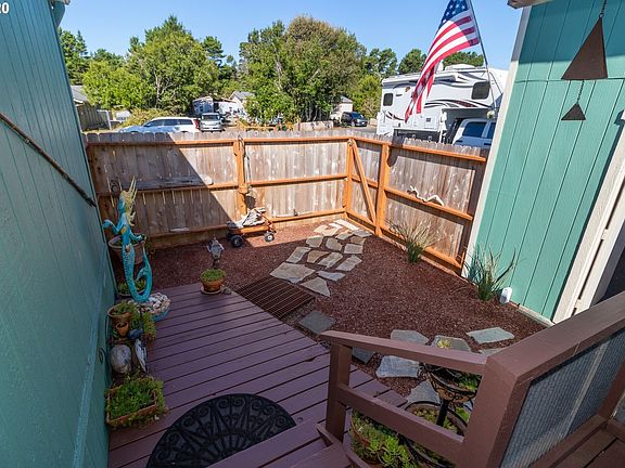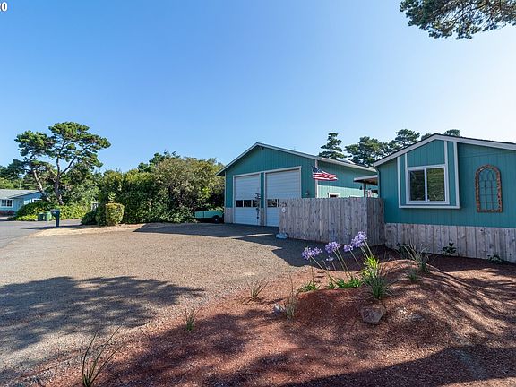 Charming, immaculate adorable beach home! Won't last long once you see inside. Golden West 1986 2 bed/2 ba with opposite end bedrooms. Great room with new flooring, kitchen cabinets, upgrades throughout. Absolutely move in ready. Fenced in front for privacy; covered front porch; back deck; lawn area for entertaining. RV garage 30x40 ft with 1/4 bath and two 12 ft doors; two 220 outlets; and hot tub included. On cul-de-sac for privacy. Minutes to the beach.