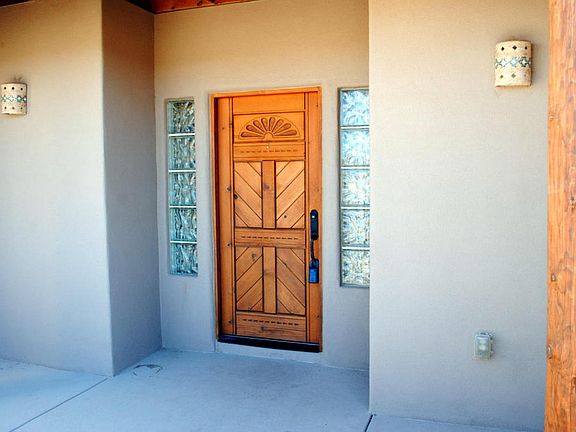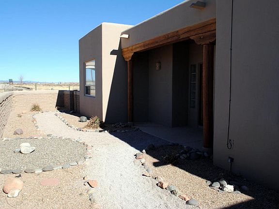 Awesome Pueblo situated on a sprawling full acre overlooking the Rio Grande Valley & Sandia! Inviting adobe courtyard sets the tone ** Massive great room with floor to ceiling picture windows and cozy kiva * Granite counters * knotty pine cabinetry highlight the kitchen * Wonderful portal and immense views out the back door* Fully walled back yard with custom gates * RV parking with H20/elec ** 7 zones of soothing radiant heat ** Refridgerated A/C with back up CFA ** E-1 zoning allows for horses **