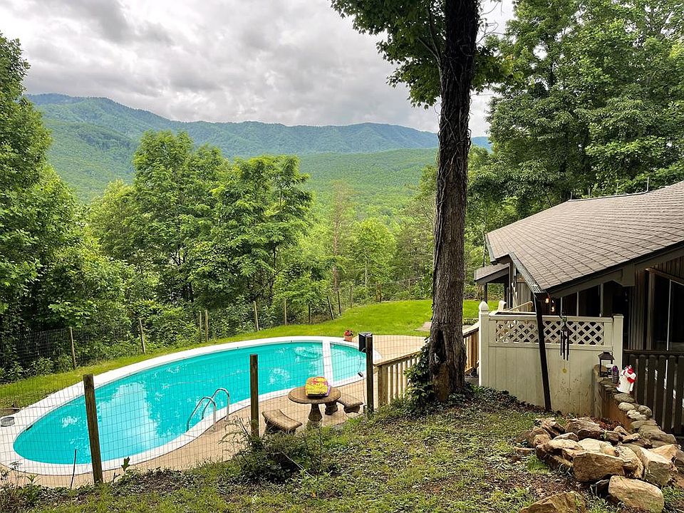 Remodeled Post and Beam construction with Cathedral ceilings on the main level with great mountain wide range views of the National Park. This property includes an additional view lot. 2 bathrooms on the main level with another full bathroom off the bedroom down stairs. Large master bedroom with updated tile bathroom and stone fireplace. Main level open floor plan with large windows and fireplace in the living room . Sits on two lots on 1.5 useable acres. Gunite Swimming pool overlooks the mountains. There is a detached 2 car garage that could easily be converted to additional living. Fenced in yard. Two driveways. Upper driveway has large level parking. Walk out lower level has game room, sunroom and large bedroom with an attached large bathroom with bonus sleeping area. Additional parking in lower driveway. Great income potential and easy access to downtown Gatlinburg. Currently furnished and on AirBnb. This home sleeps 11 people. New roof, New HVAC, new appliances, and new sewer lines in 2021.