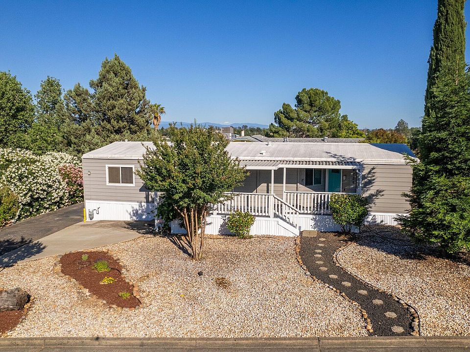 Welcome to this charming manufactured home on a permanent foundation! A long private driveway leads you to this inviting home featuring a durable metal roof, recently updated countertops, and newer appliances. Inside, you'll find a great floor plan that maximizes space and comfort. Step outside to enjoy the fenced backyard, perfect for relaxing or entertaining, and beautiful landscaping. The covered front porch provides a cozy spot to unwind, and the outbuildings offer ample storage for all your needs. This home is conveniently located near town for shopping and restaurants and just a short drive to beautiful Shasta Lake or Whiskey Town Lake.
